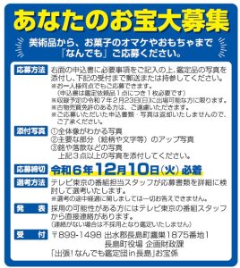 令和7年2月23日(日)に公開収録を行いました「出張!なんでも鑑定団in長島」の放送日が決定しましたので、ご案内いたします。