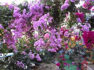 白、赤、黄、ピンクなど約30種類 170本余りの色とりどりのブーゲンビリアが咲き誇りみなさんをお待ちしています。